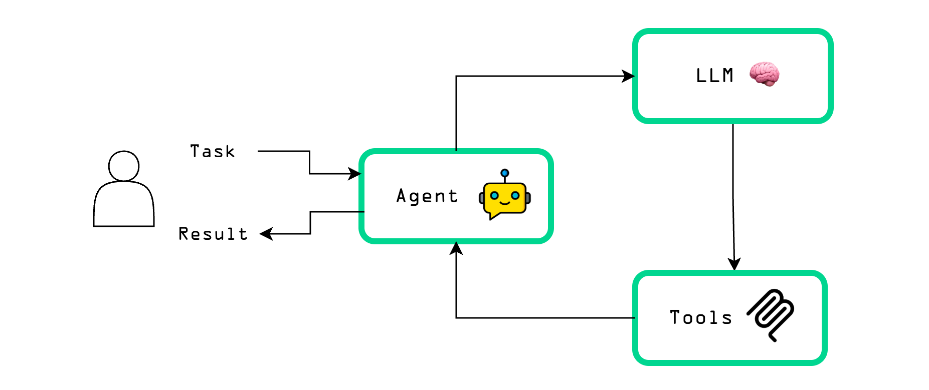An AI agent is a system where a large language model (LLM) is given a goal and the means to pursue it autonomously. Rather than simply generating a response to a prompt, the agent can take actions, observe results, and iterate — continuing until the goal is achieved or it determines it cannot proceed further.
